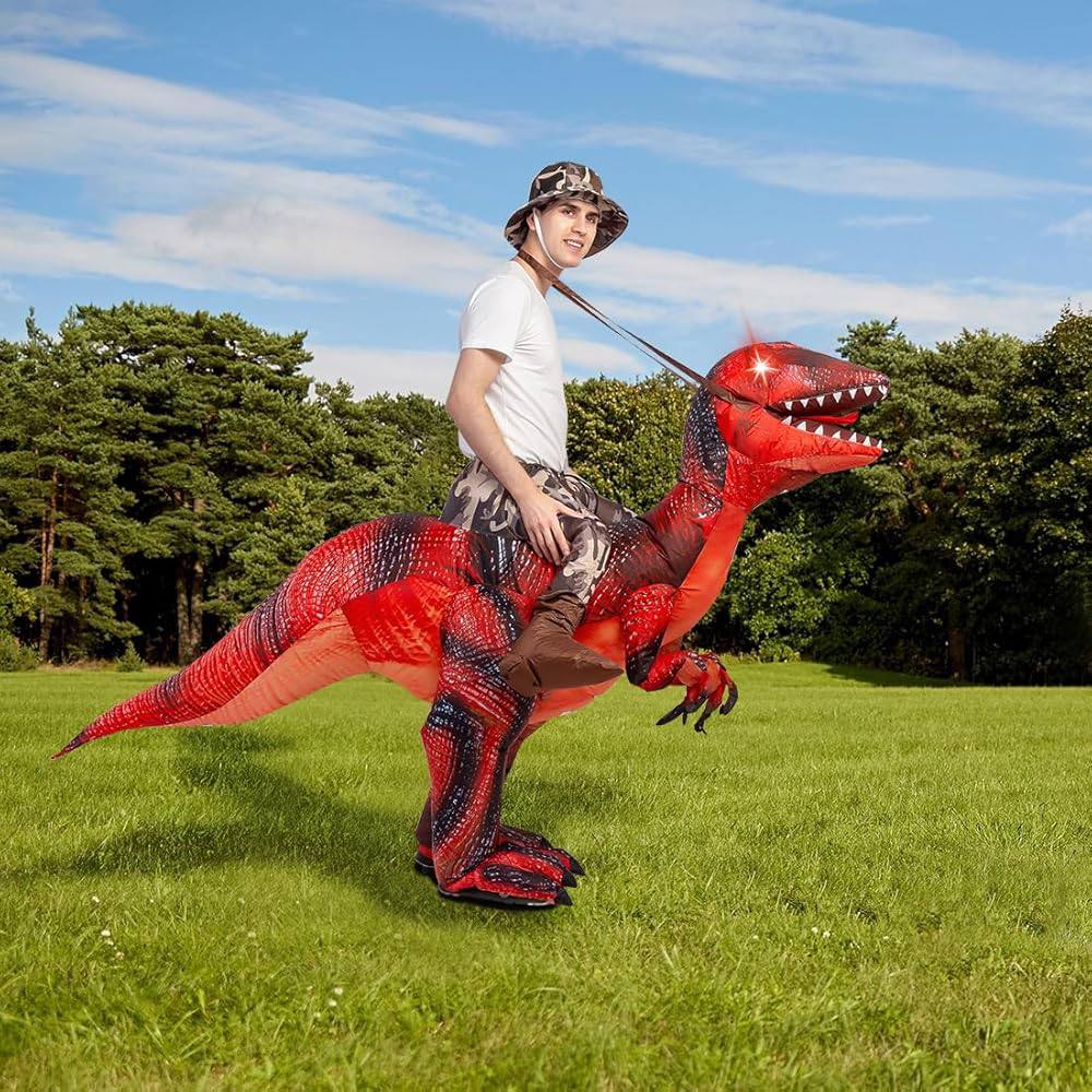 Stand out with our inflatable Raptor costume – the perfect mix of adventure, humor, and attention-grabbing style for Halloween and themed events.
